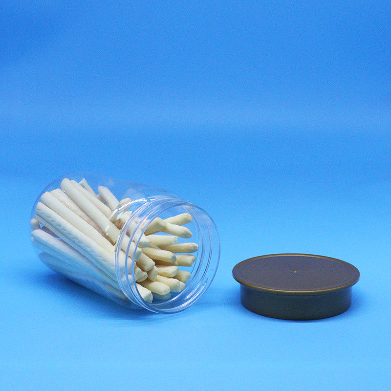 Durchsichtige Versiegelte Süßigkeiten Keks PET Kunststoff Nüsse Nahrung Hohe runde Gläser Schraubkappen