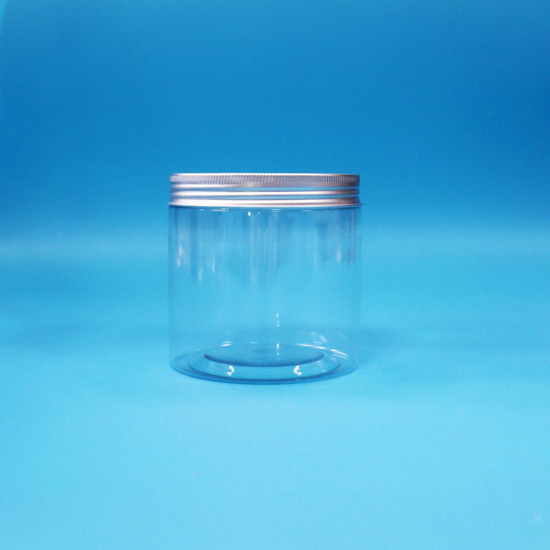 Durchsichtige runde, breite Mundflasche, PET-Plastik, Süßigkeiten, Lebensmittel-Cookie-Glas, Aluminiumkappe