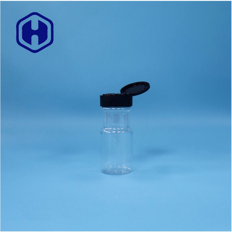 Durchsichtige Kunststoffe Gewürz Salz Schwarzpepper Pulver Basilikum PET Glas Flip Top Cap