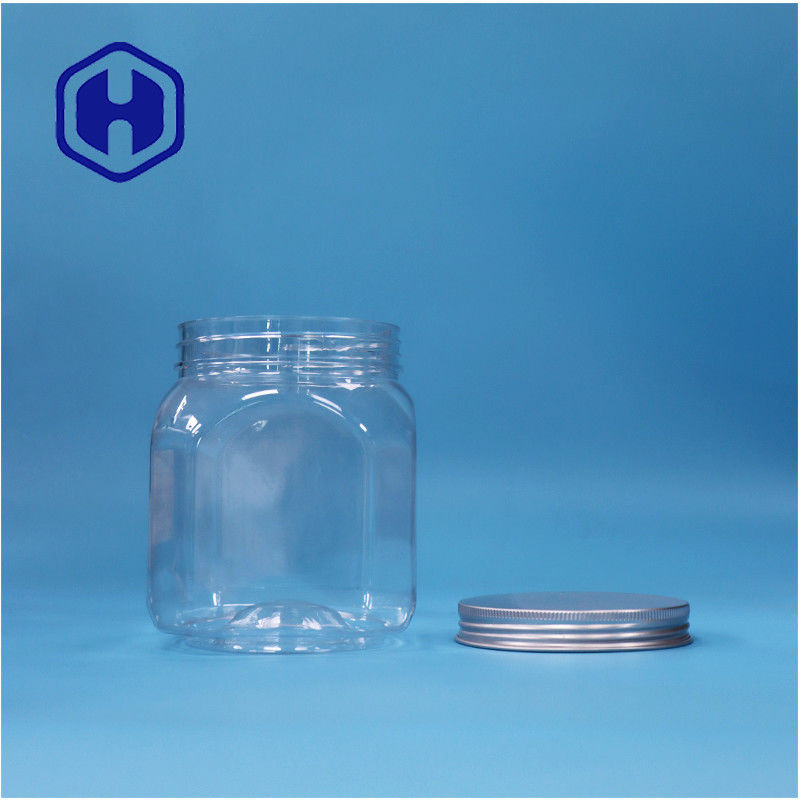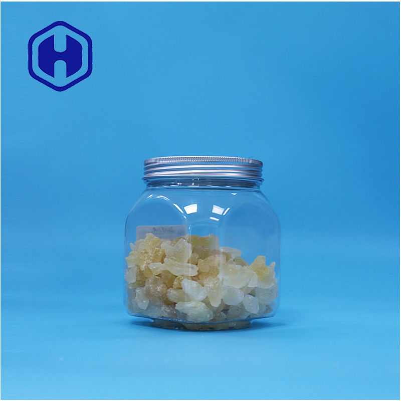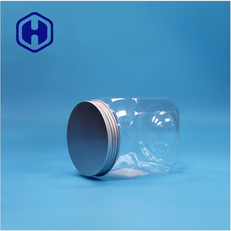 Polygonal geformte klare Kunststoff-Cookies Rock Candy Nuts Zuckerkrug Aluminium-Oberdeckel