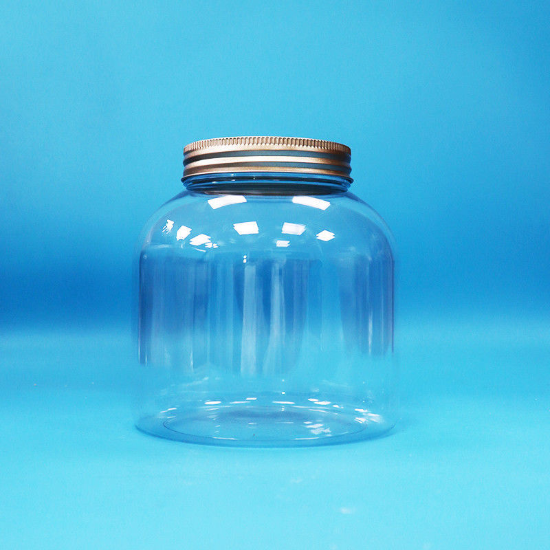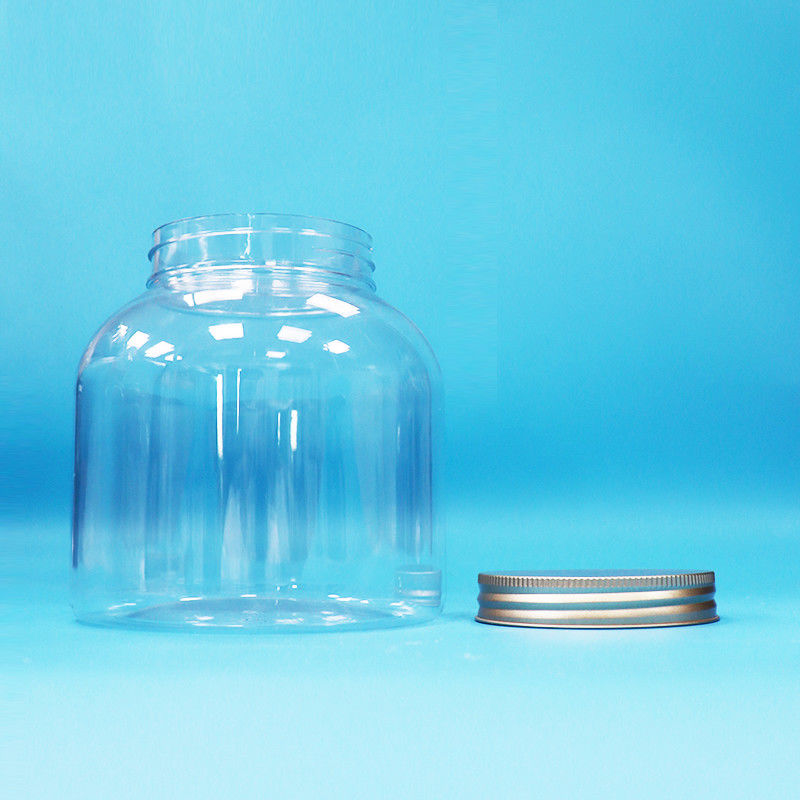 Durchsichtige Kunststoff-PET-Runde Süßigkeiten tägliche Lebensmittel-Gläser mit Aluminium-Schraubdeckel