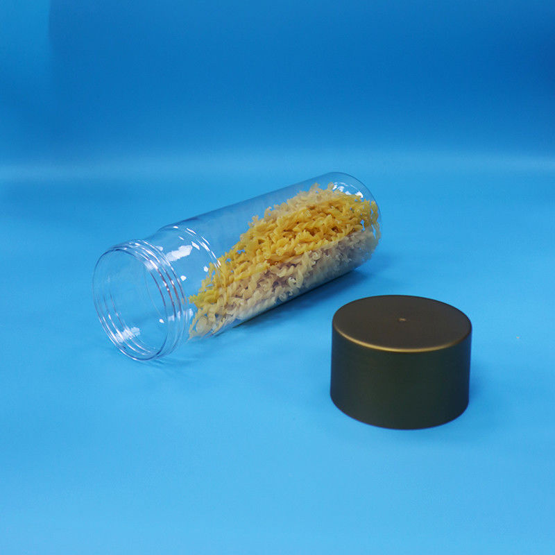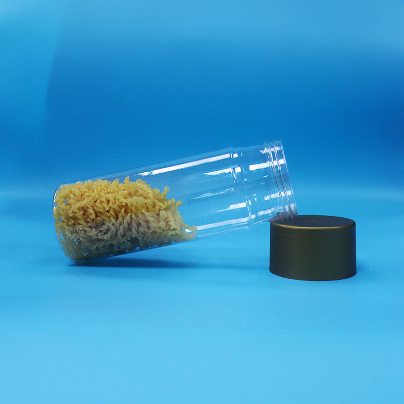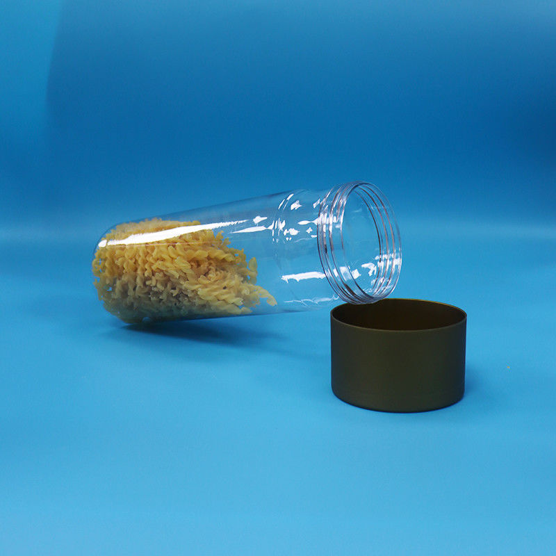 Durchsichtige PET-Plastik-Cookies Nüsse Süßigkeiten Hohe Zylinder Runde Gläser Schraubkappen