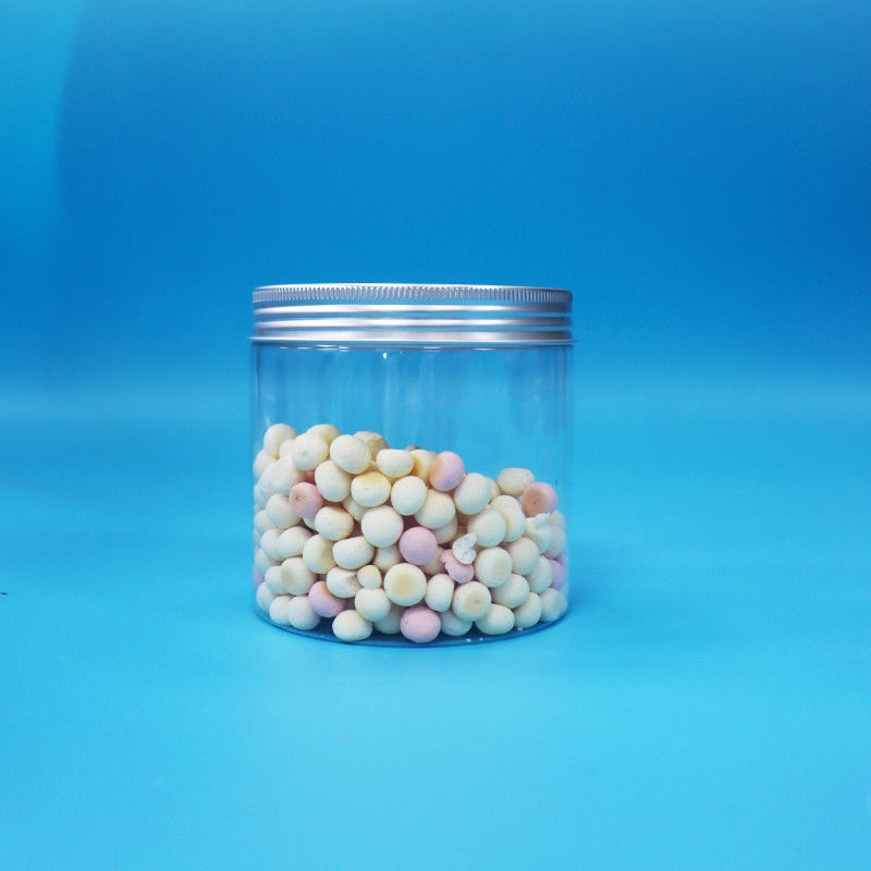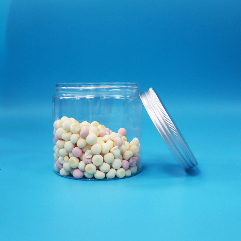 Runder Breiter Mund Zylinderform Klares PET Kunststoff-Cookies Glas Aluminium-Schraubkappe