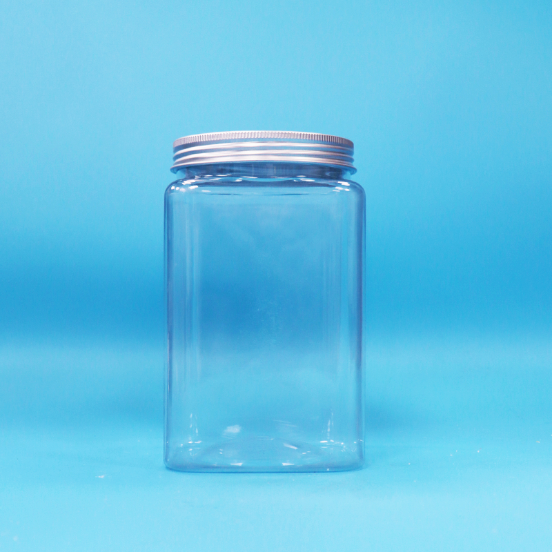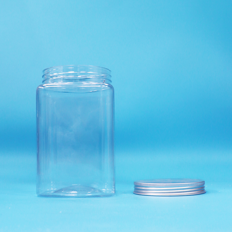 BPA-freie, quadratische, transparente PET-Kunststoff-Nudeln-Bonbongläser und Schraubverschluss aus Aluminium
