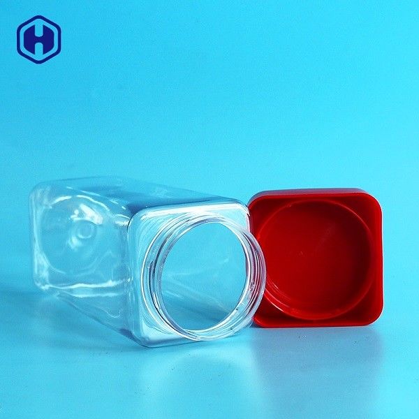 Quadratischer Plastik HAUSTIER großer Öffnung rüttelt Speichertrockene Nuss-Flaschen-rote Überwurfmutter-Dosen