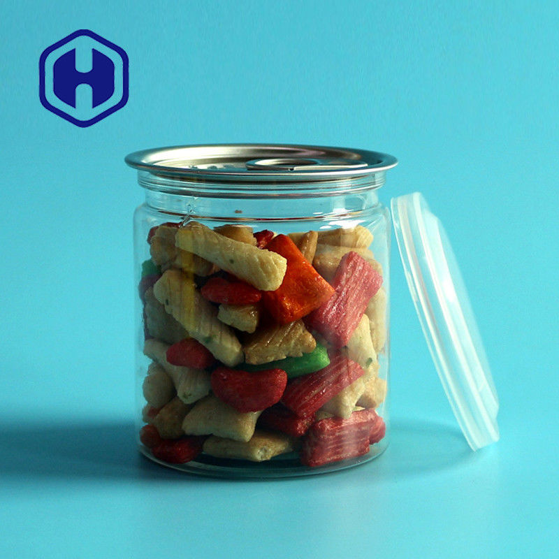 Dieser klare Kunststoffbehälter ist eine leere PET-Dose für Lebensmittel, die sich für die Lagerung von Trockenfutter, Soße, Gewürzen usw. eignet.Es hat ein leichtes offenes Ende und kommt in einer zylindrischen Form oder kann angepasst werden.