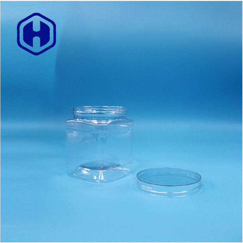 Durchsichtige Quadrat-PET-Plastik-Food-Grade-Zucker-Süßigkeiten-Cookies-Glas mit Schraubdeckel