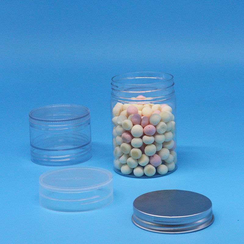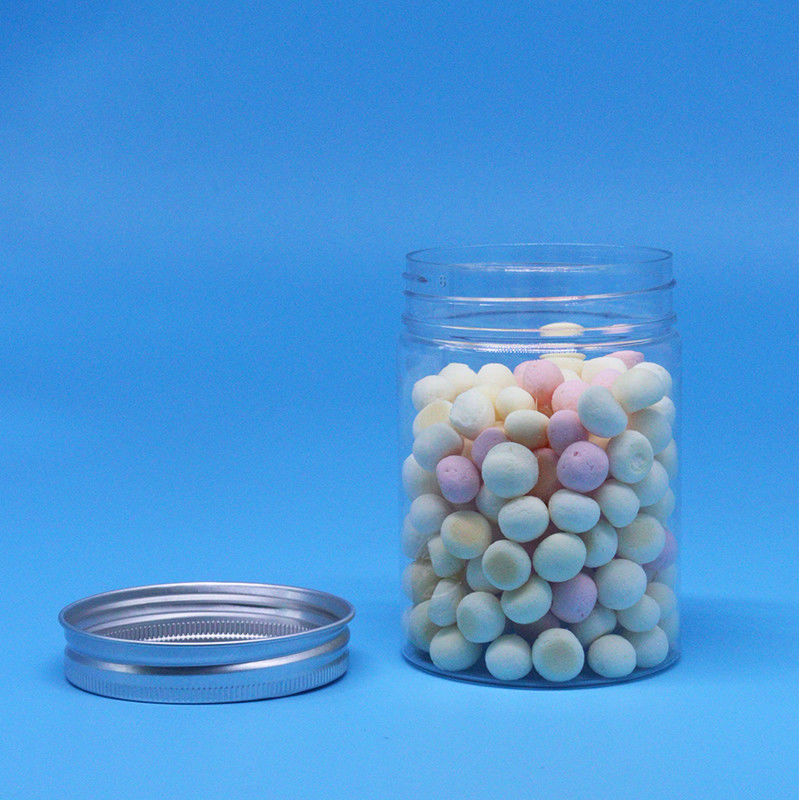 Leerer PET Lebensmittel Zylinder Rundes Lebensmittel Süßigkeiten transparentes Glas Schrauben flache Deckel